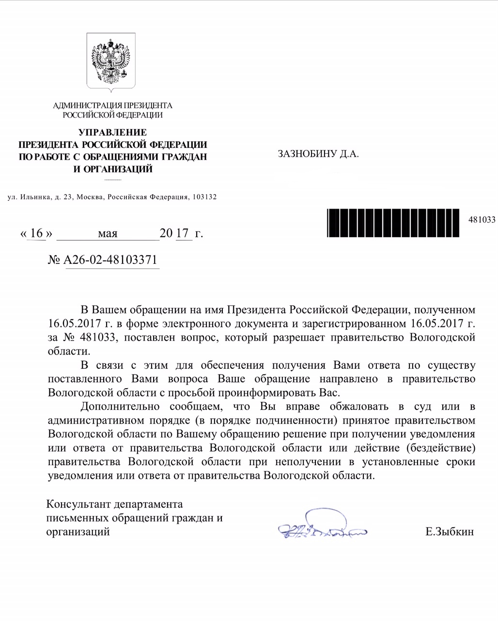 И вот, начали получать первые ответы от президентской администрации.