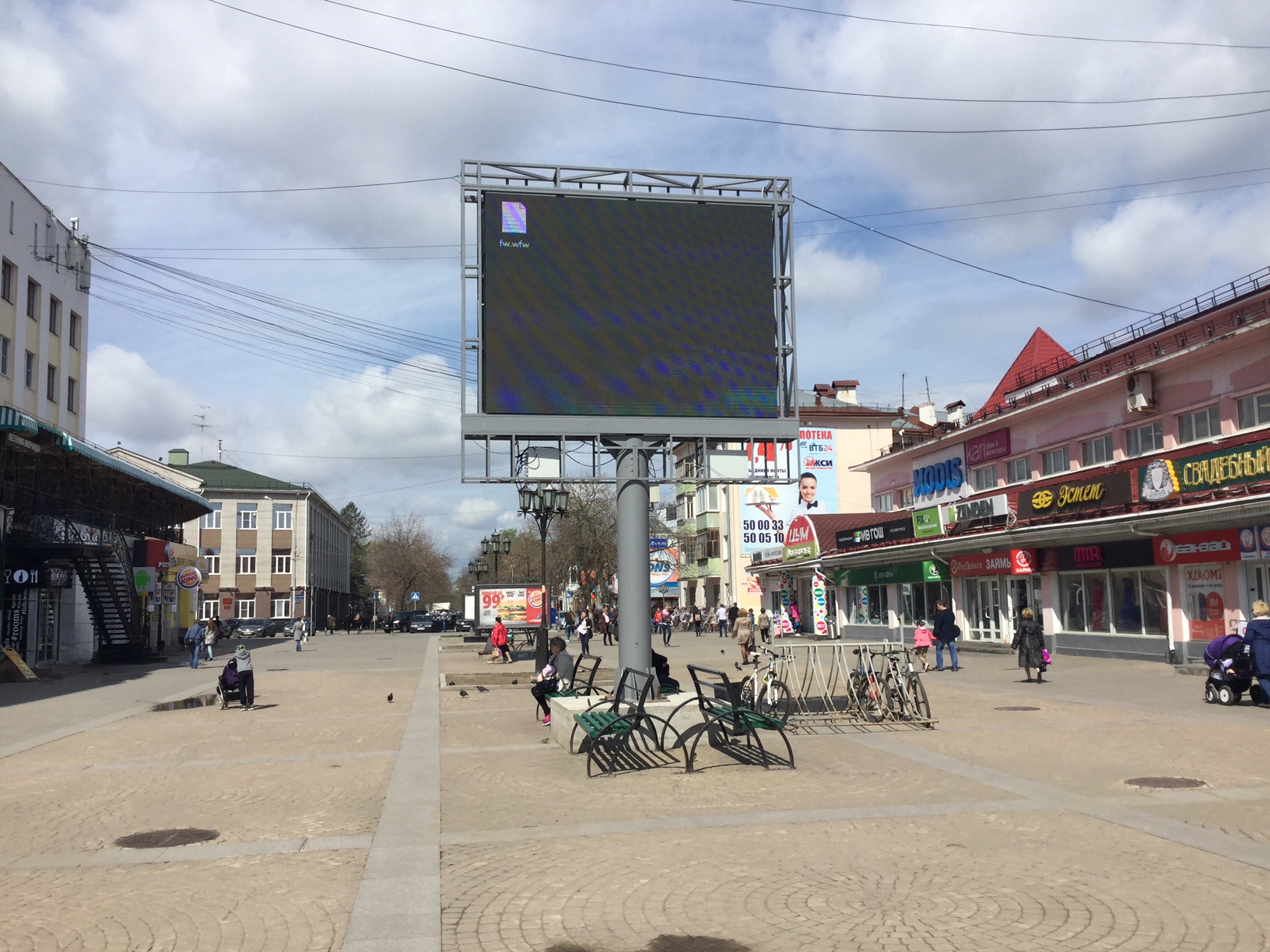 Точно также это подтверждается установленным у ЦУМа огромным экраном, который поставили посередь площади.