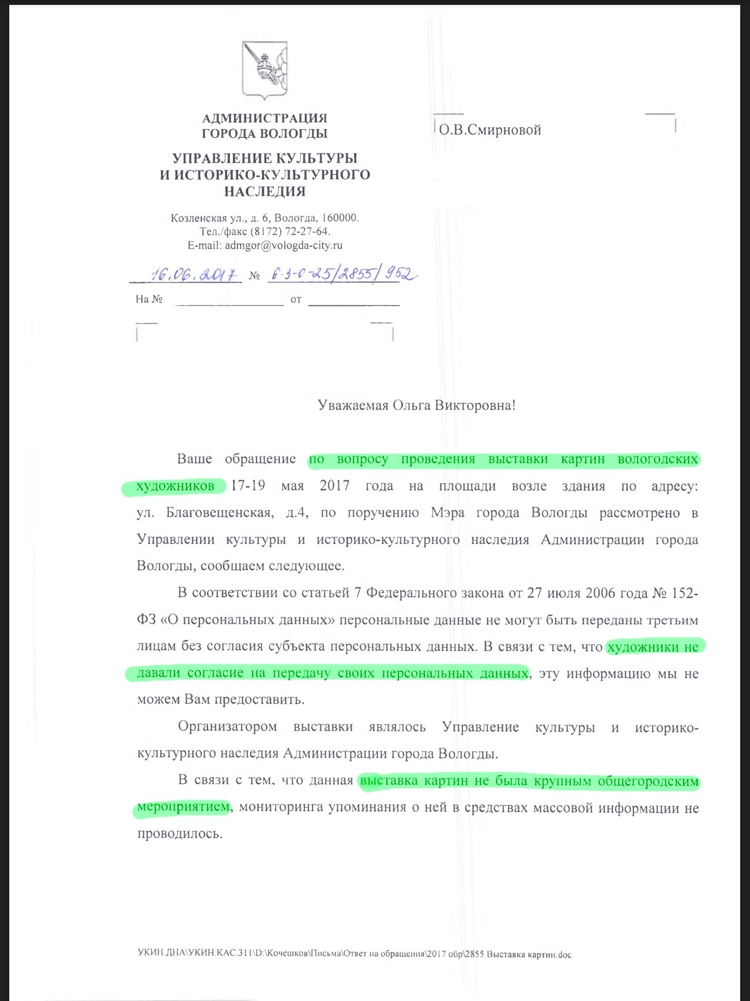 Итак. Еще в мае мы получали отказ в установке КУБов на площади у ЦУМа. АдГорода предъявил в суде бумагу, что якобы в эти дни будет проводиться выставка художников. Так как никакой выставки у ЦУМа никто никогда и в глаза не видел мы решили сделать официальный запрос. Тем более, что ни один поисковик или новостной ресурс также не сообщали о проведенных мероприятиях. Следов выставки не было ни где.