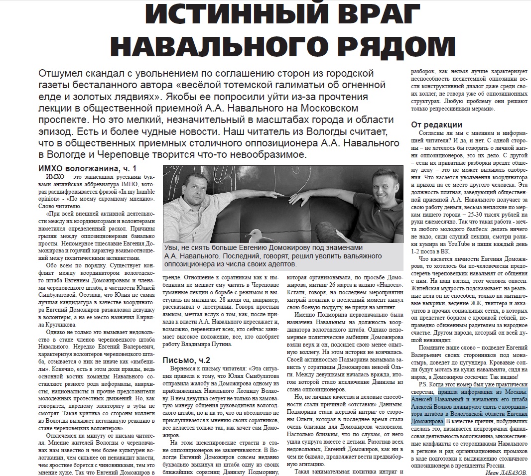 И да, лучшим ответом на подобную хрень будет ваше участие в Большом Агитационном Субботнике в Вологде и Череповце. Ударим по пропаганде и лжи распространением информации об Алексее Навальном.