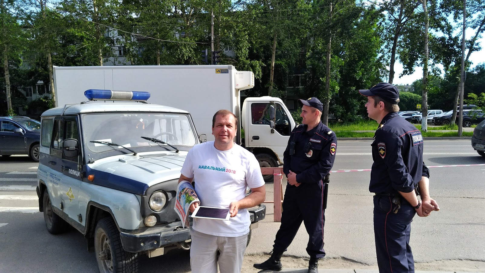 8:00 как Е.Доможиров общался с полицией с утра у завода ВОМЗ. Изъяли одну газету.