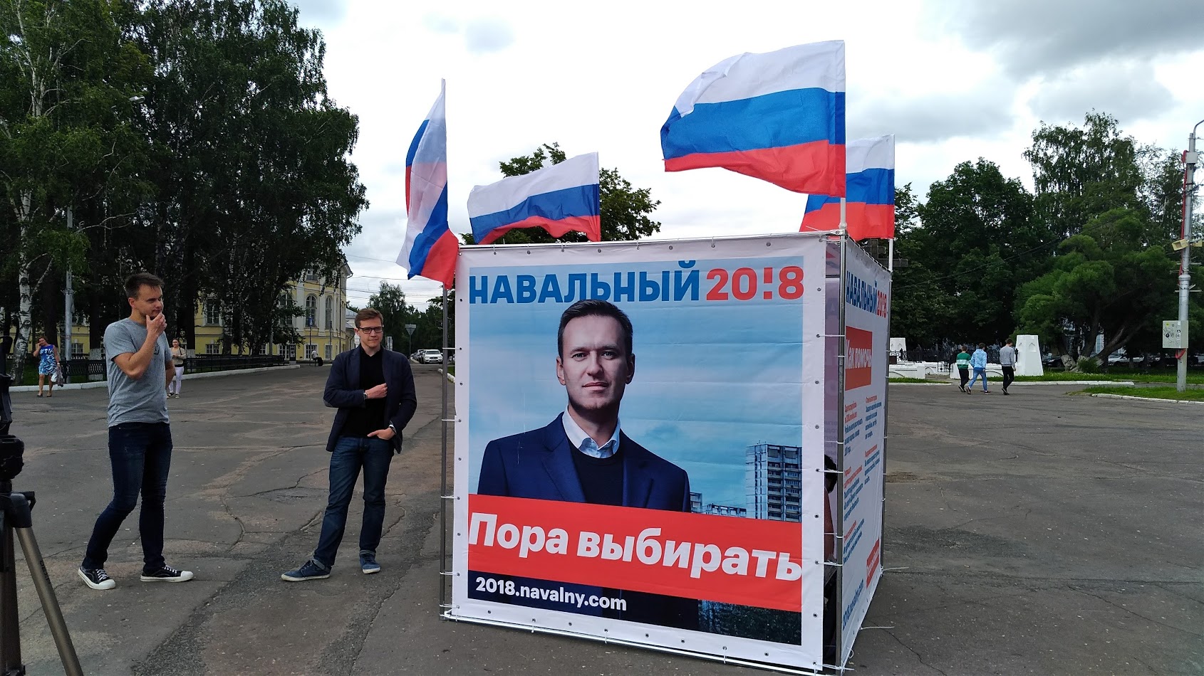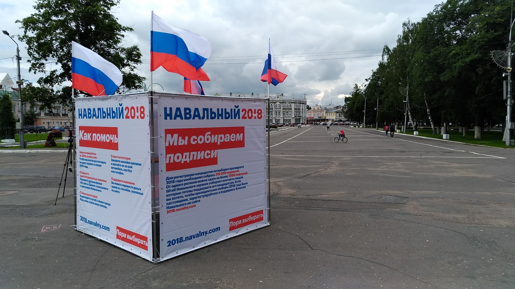 Вышли с кубом #Навальный2018 на площадь Революции и заодно пообщались в прямом эфире. Продолжая объявленный штабом в Вологде большой агитационный вторник.