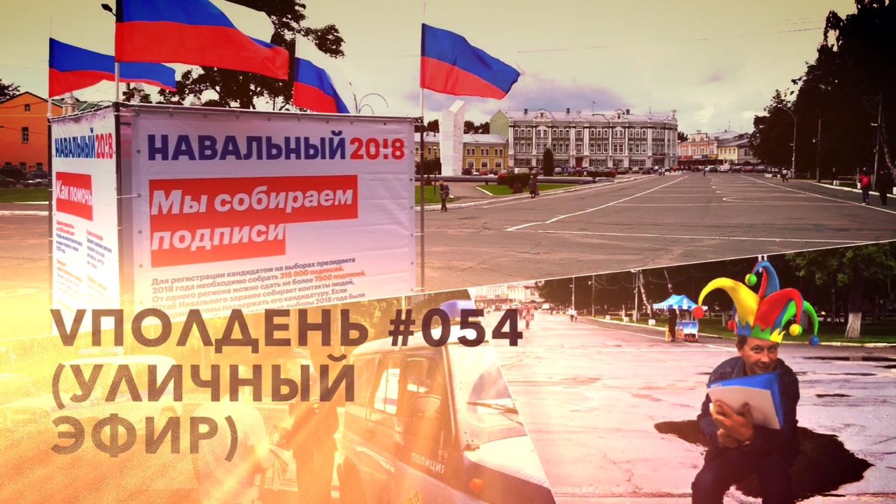 27:00 девушки берут газеты, а пожилая женщина против Навального. Но в эфир не согласилась.