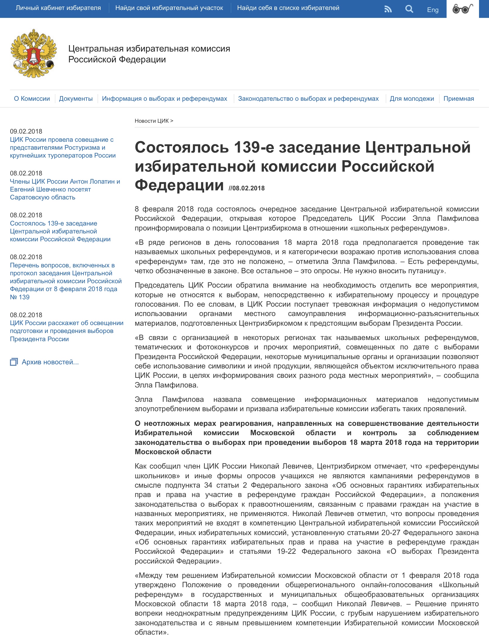 На прошлой неделе, на заседании ЦИК, высказались по поводу школьных референдумов и прочих голосований 18 марта. Формально Элла Памфилова и Ко были возмущены использованием символики и проведением псевдовыборных процедур. Буквально через несколько часов после заседания ЦИК вологодские власти объявили об утверждении списка именно такого голосования.
