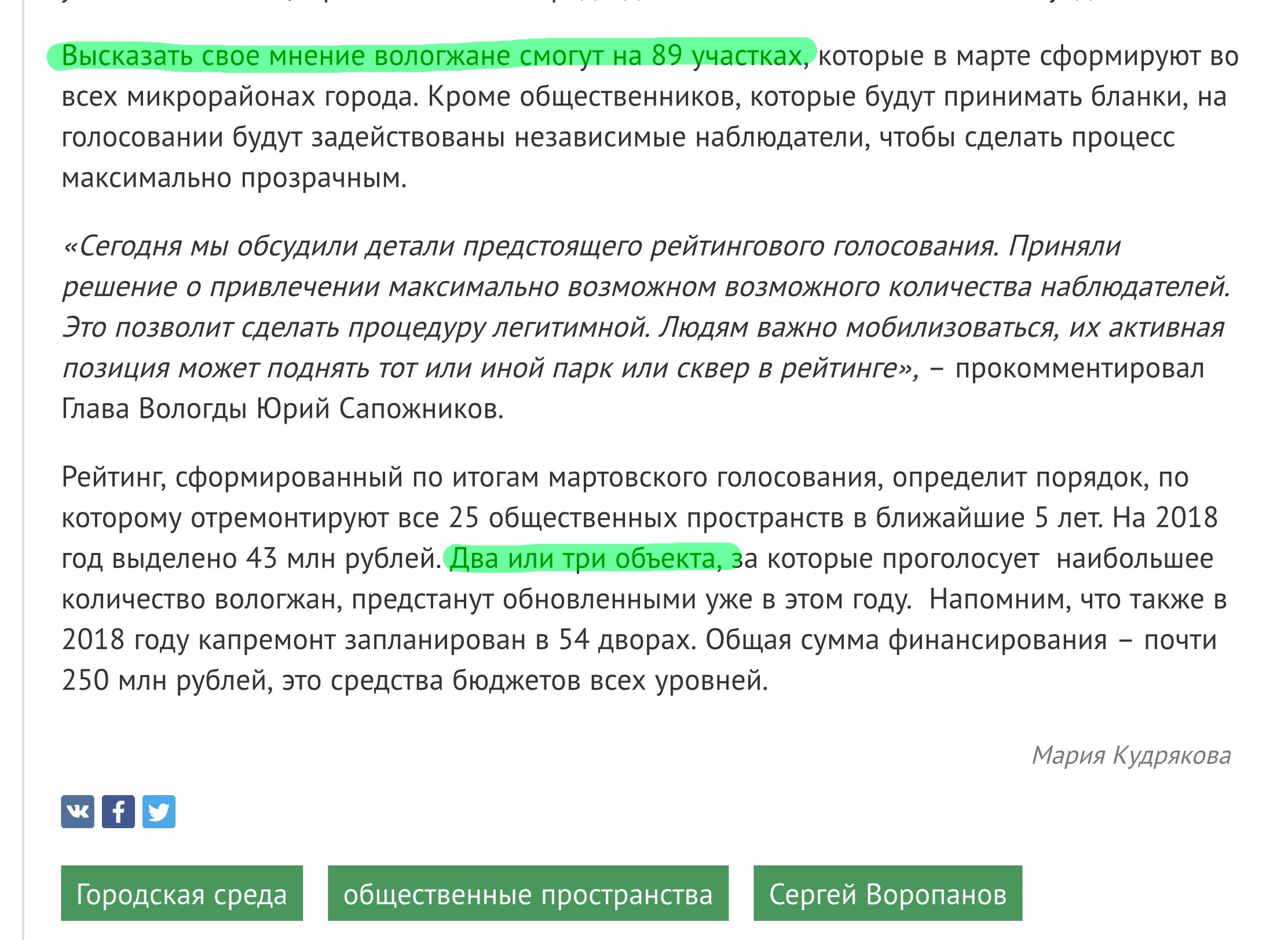 Впрочем, даже не это вызывает основное возмущение. Основное это то, что за 18 лет правления у вас, вологжане, украли не 25 благоустроенных общественных пространств, а 125. А теперь, как бы, позволяют выбрать два или три. Вместе с вором президентом сделавшим долларовыми миллиардерами всех своих друзей.