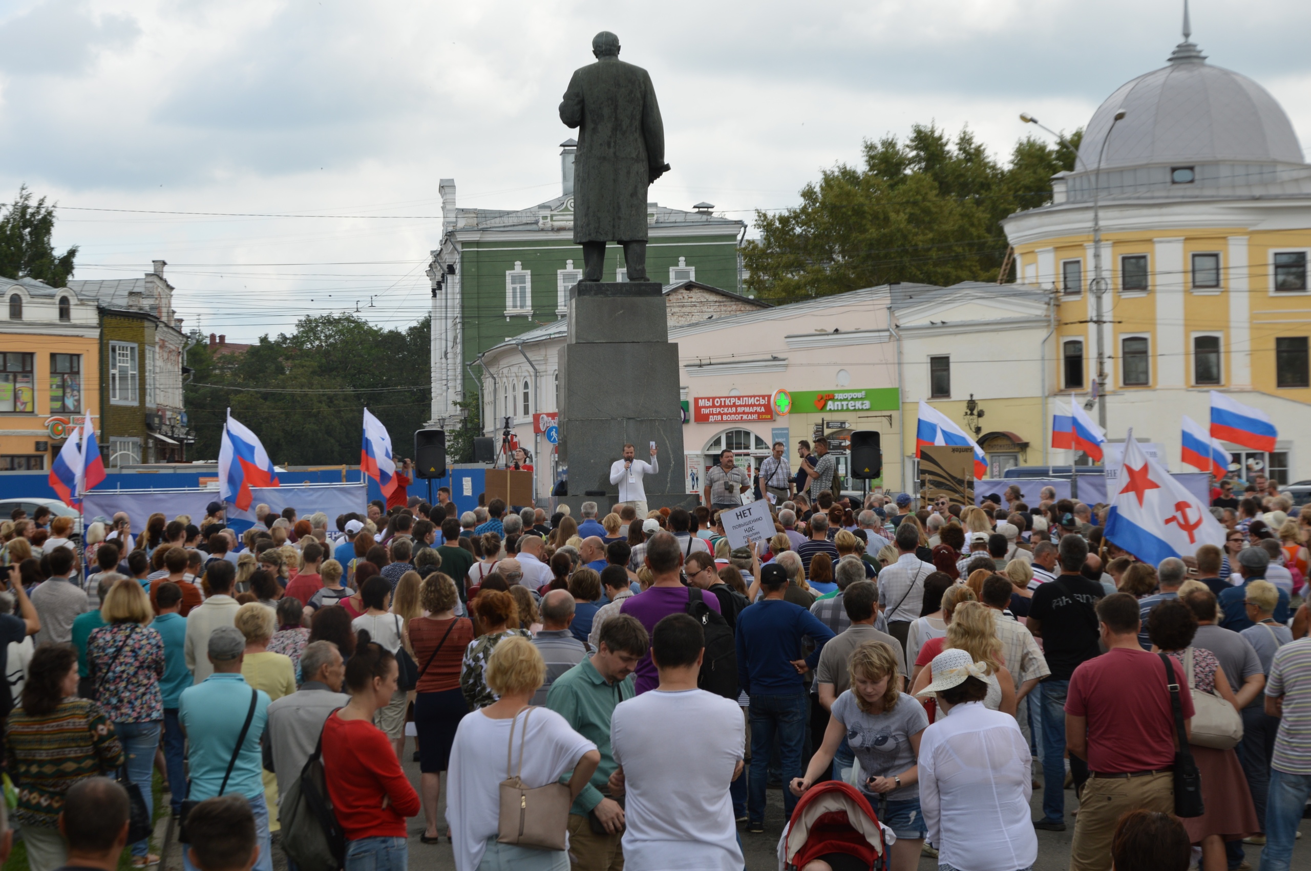 #28июля в Вологде прошёл очередной митинг против повышения пенсионного возраста и других антинародных решений правительства и президента. На публичную акцию вышло порядка 1000 вологжан, что вполне немало для выходного дня, но не так много как должно быть для быстрой отмены антиреформ.