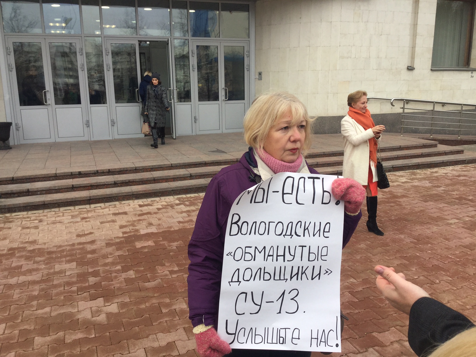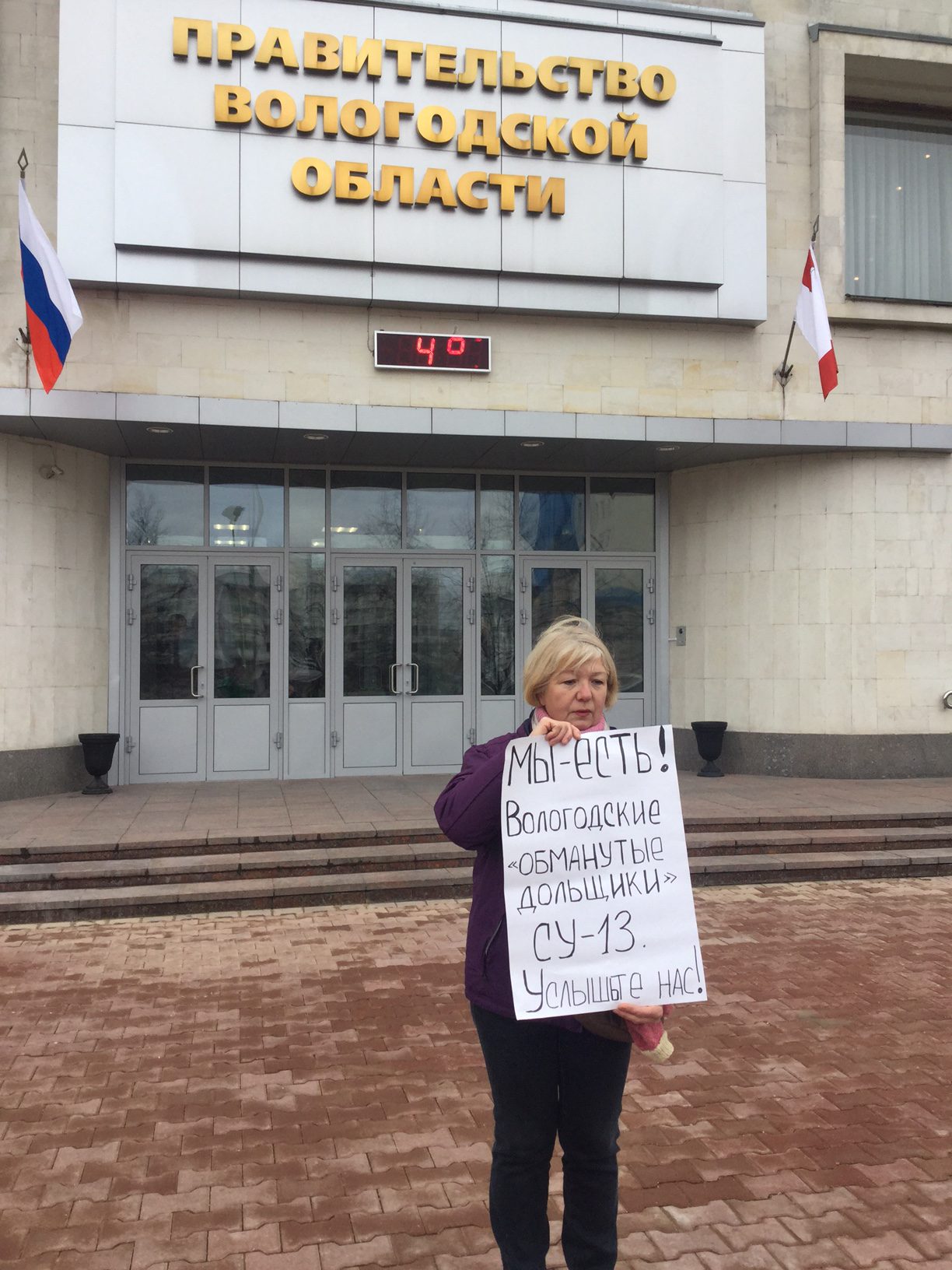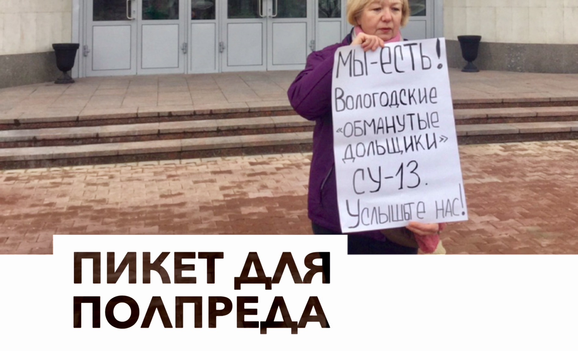 Сегодня Галина Грибуцкая, одна из обманутых дольщиков поселка Кувшиново, вышла на одиночный пикет к Правительству Вологодской области.